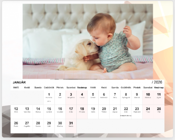 Készíts egyedi 12+1 oldalas fényképes naptárat, ahol minden hónapra külön képet választhatsz! Prémium fotópapír, élénk színek, egyszerű online szerkesztés – tökéletes ajándék!