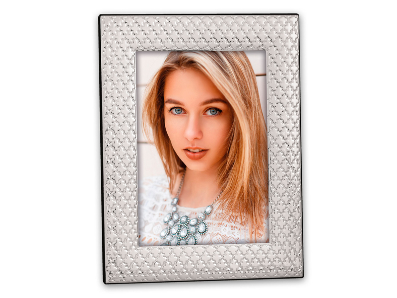 Ezüst színû képkeret, bársonnyal borított hátlappalMérete: 13x18 cmKitámasztható asztali kivitel
