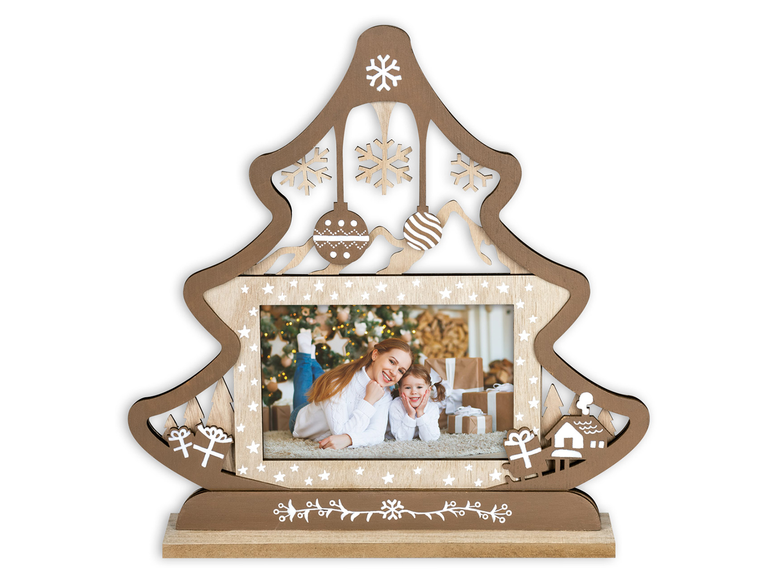 Karácsonyfa alakú képkeret Dombornyomott díszítéssel Képméret: 10*15 Asztalra állítható kivitel
