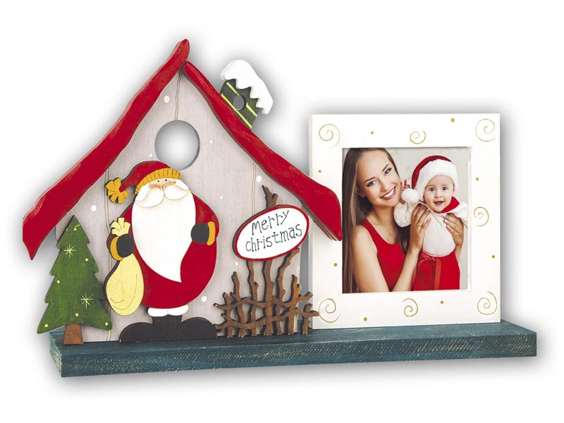 Télapós fa képkeret Képkeret mérete: 30x19 cm Berakható kép mérete: 10x10 cm Kitámasztható asztali kivitel