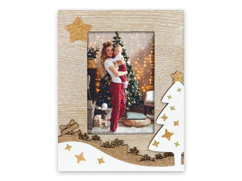 Karácsonyi témájú képkeret Berakható kép mérete: 10*15 cm Kitámasztható asztali kivitel